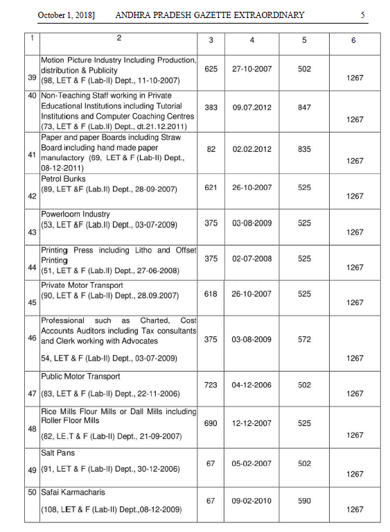 Notification - Andhra Pradesh Minimum Wages CPI Notification 1st October 2018