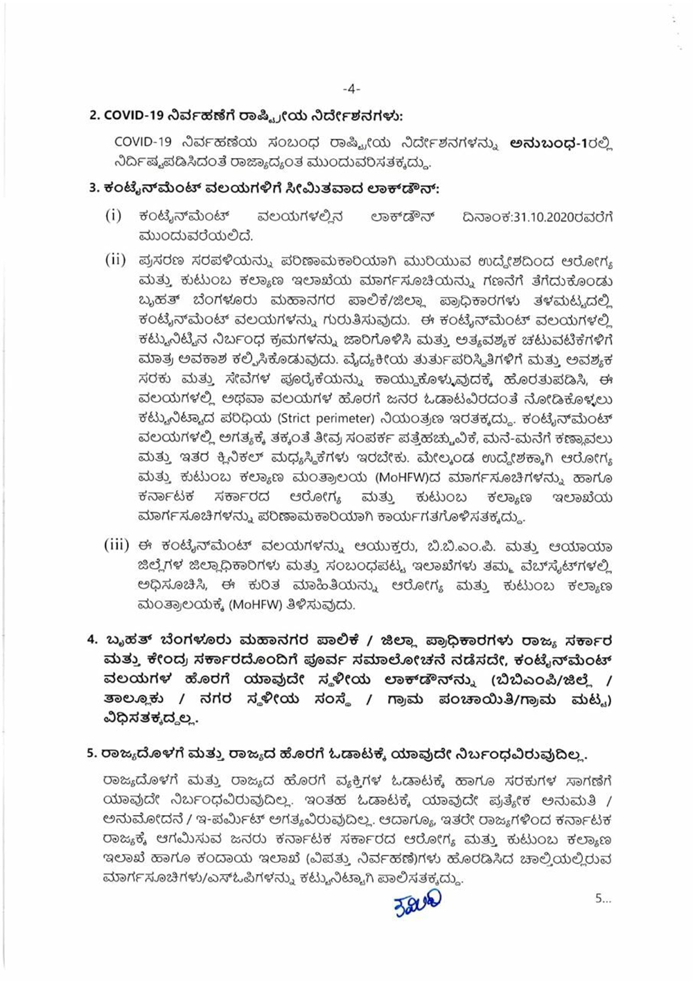 Karnataka state's Unlock 5 notification dated 1 October 2020